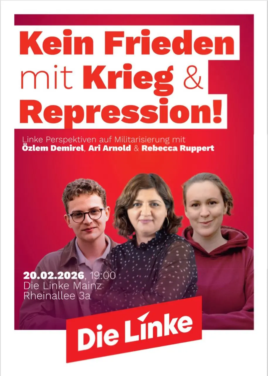 20. Februar Veranstaltung mit u.a. Özlem Demirel (MdEP) zu -Kein Frieden mit Krieg und Repression)- --MZ, Rheinallee 3a 19h